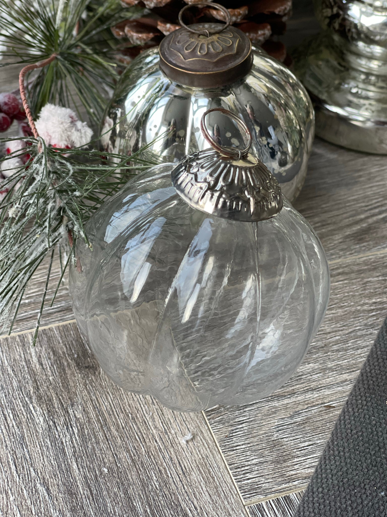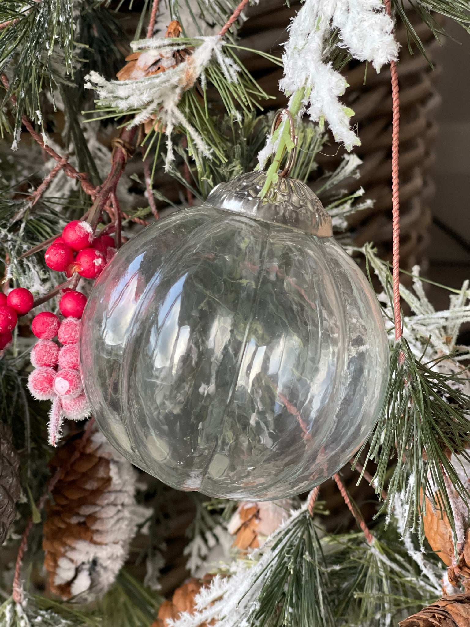 Classic glass bauble with pewter top detail.
